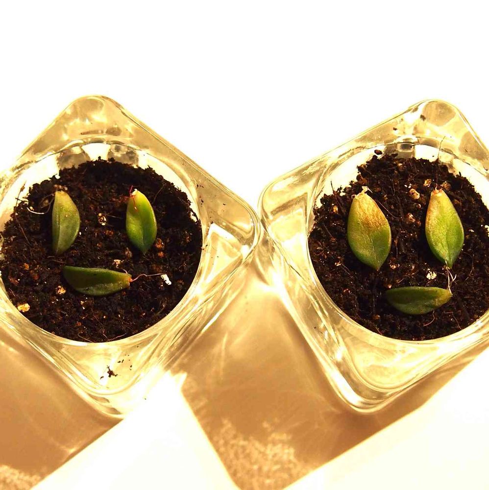 初めての葉挿し、2週間でやっと根っこが出てきて嬉しい( ´艸`)