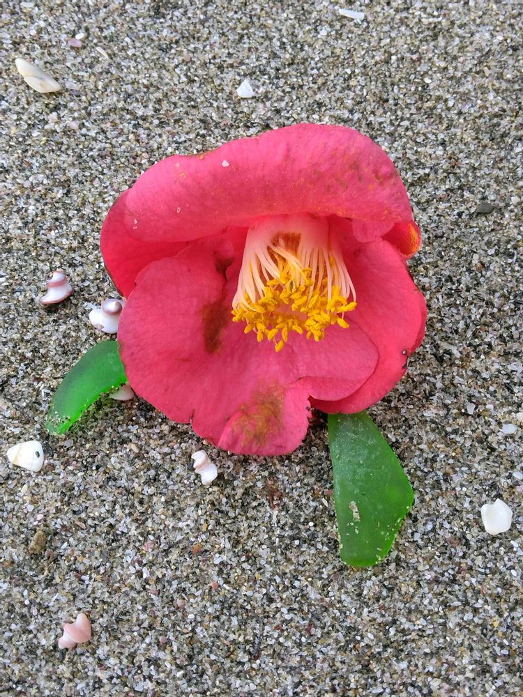 シーグラスを拾って🍃に見立てました😆