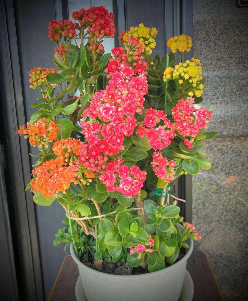 いっせいに咲いて見ごたえありますね😃うちはバラバラ😅カランコエ、簡単なようで難しく、強いようで弱かったり。最初の頃は、挿し木を人にあげてましたが、摘芯や切り戻しができないと、悲惨なことになるみたいですね( ̄ー ̄)いっそダメになったほうがよいような、で、最近はあげてないです😆