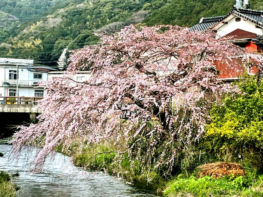 今日のウォーキングで,一の坂川沿いの枝垂れ桜,川沿いの個人宅の桜の投稿画像