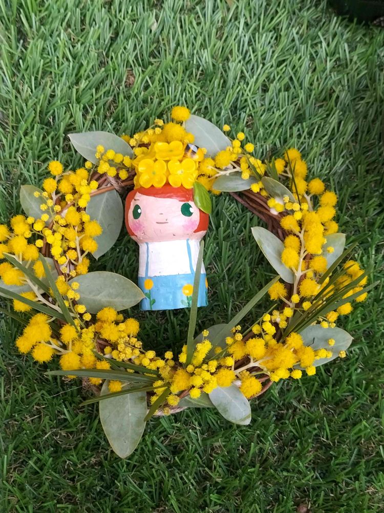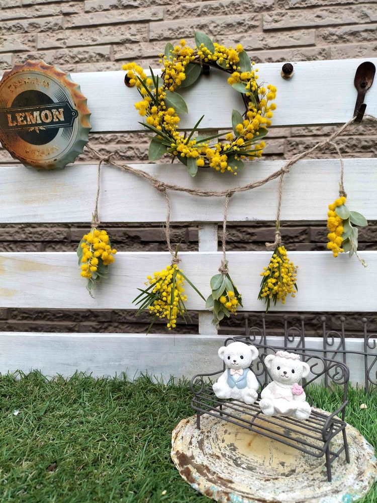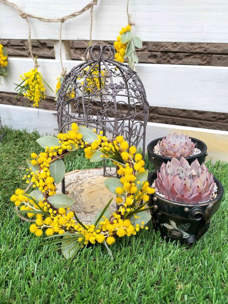 エリザベスさんから沢山のミモザをいただき、早速ミニリース、ミニガーランドを作り撮影会💛