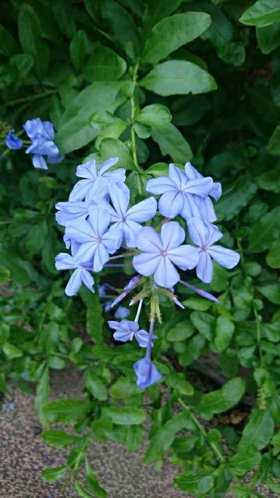 ☆☆遊歩道に咲き始めたルリマツリです。薄紫色に見えるのも、水色っぽく見えるのもありますね