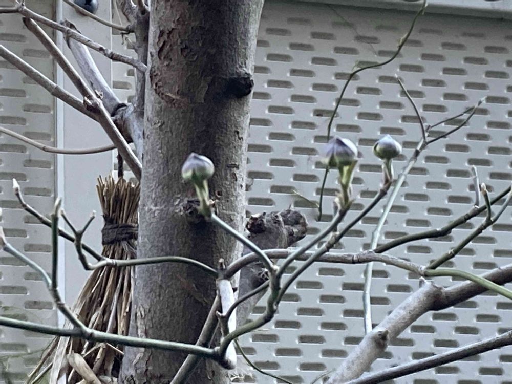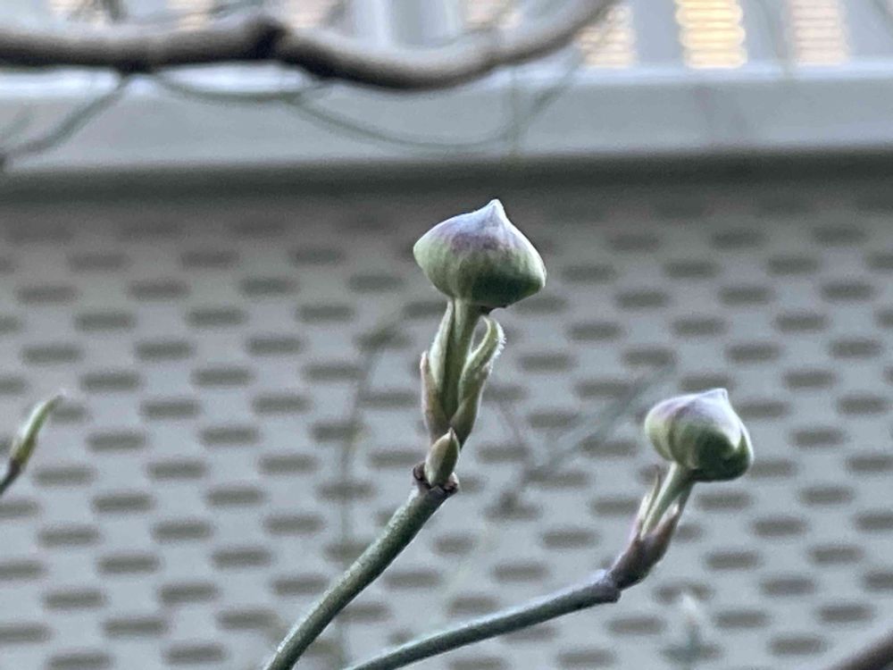 おはようございます。➰👋😃 いつもありがとうございます。🙇 ハナミズキの蕾かな⁉️ ごろちゃんの庭にも、あります。去年、花が終わった鉢を安く買いました。今年咲くのを楽しみにしてましたが、蕾ひとつしかないんです、、、😵 ⁉️⁉️⁉️