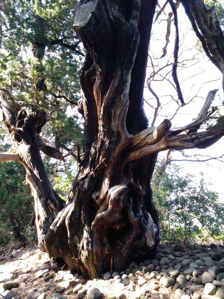 ビャクシンの巨樹。天然記念物だそうです。場所は、伊豆の大瀬崎。富士山も見えました!