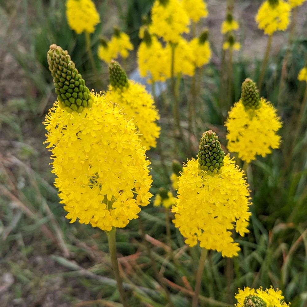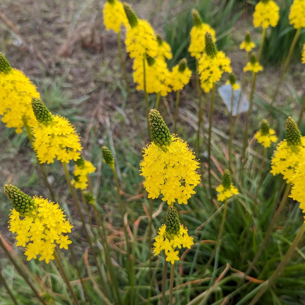 ①から③この黄色が鮮やかなお花は💛ブルビネラ フロリブンダ💛と覚えられそうにない名前のお花ですが、花茎を長く伸ばし、小さな可愛らしい花が穂になって、下方から上へと咲き上がっていくお花です🤗💞