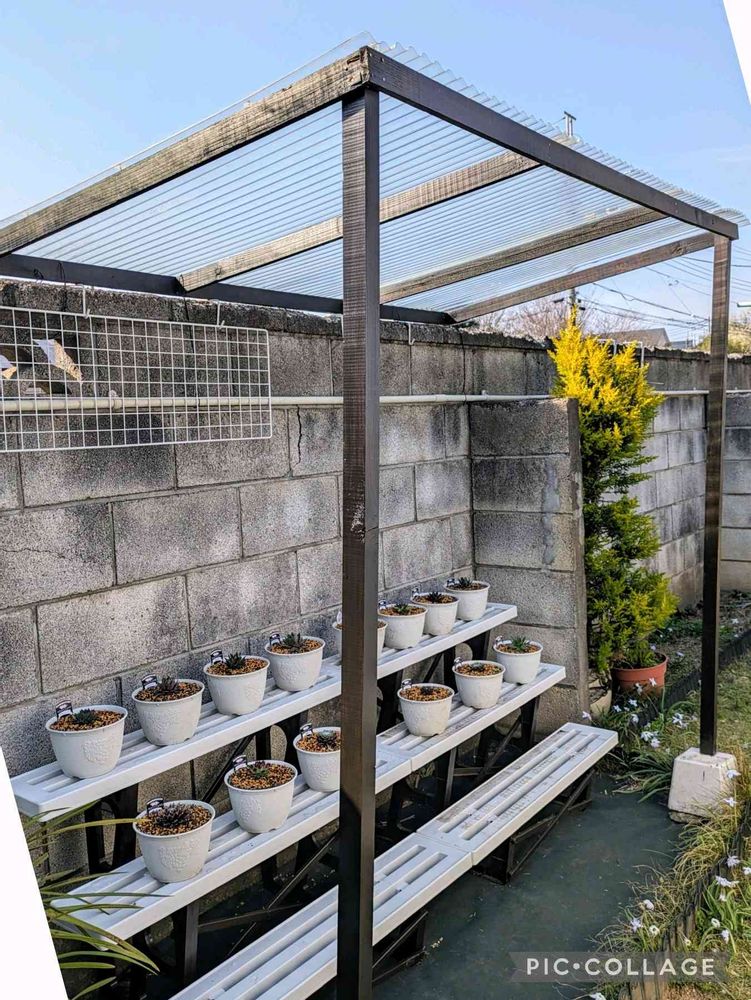 帰省した娘が、2日間でDIYした多肉置き場の屋根です(笑)😁