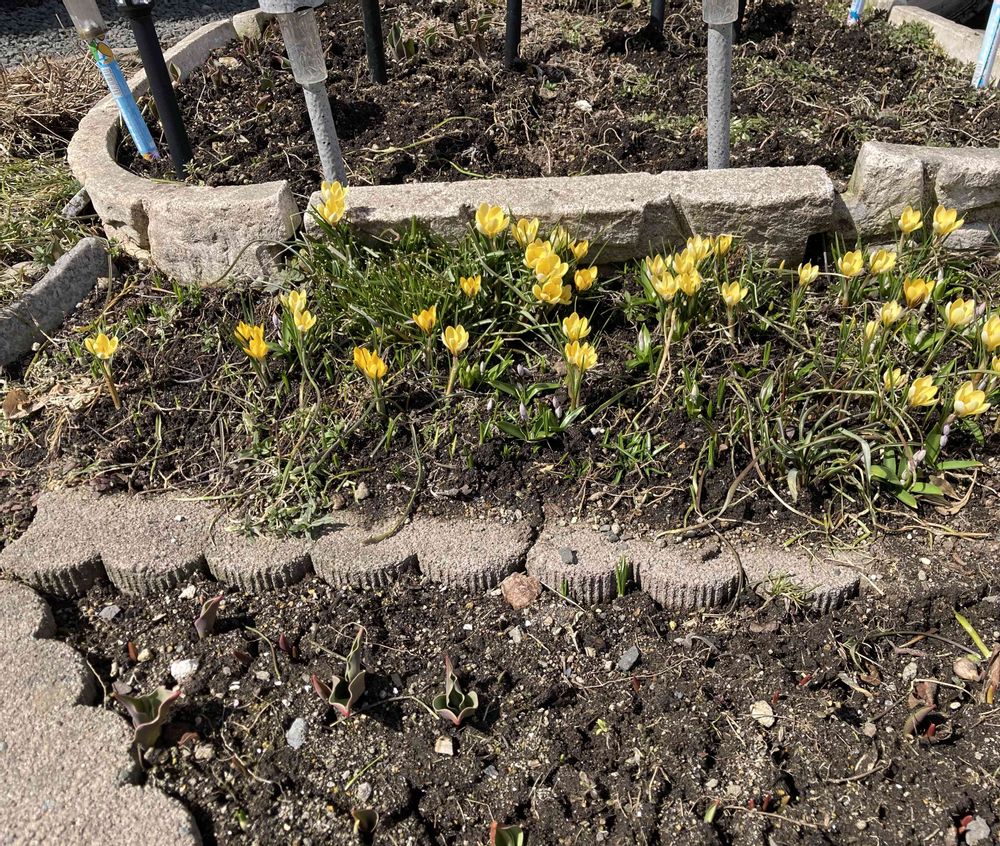 チューリップ🌷の葉がぼちぼち出て来たかな?と思っていたら、クロッカスが数日で咲いていた。