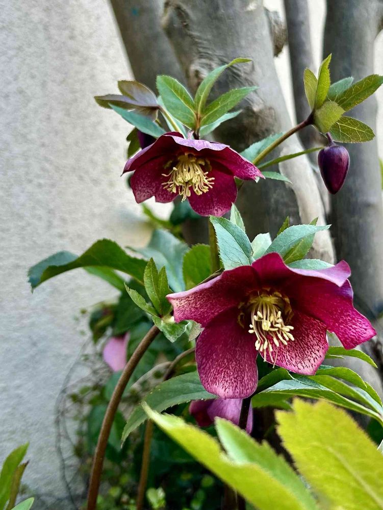 クリスマスローズはこぼれ種で増えたものがほとんどでいろんな種類のものが混ざり合っています。