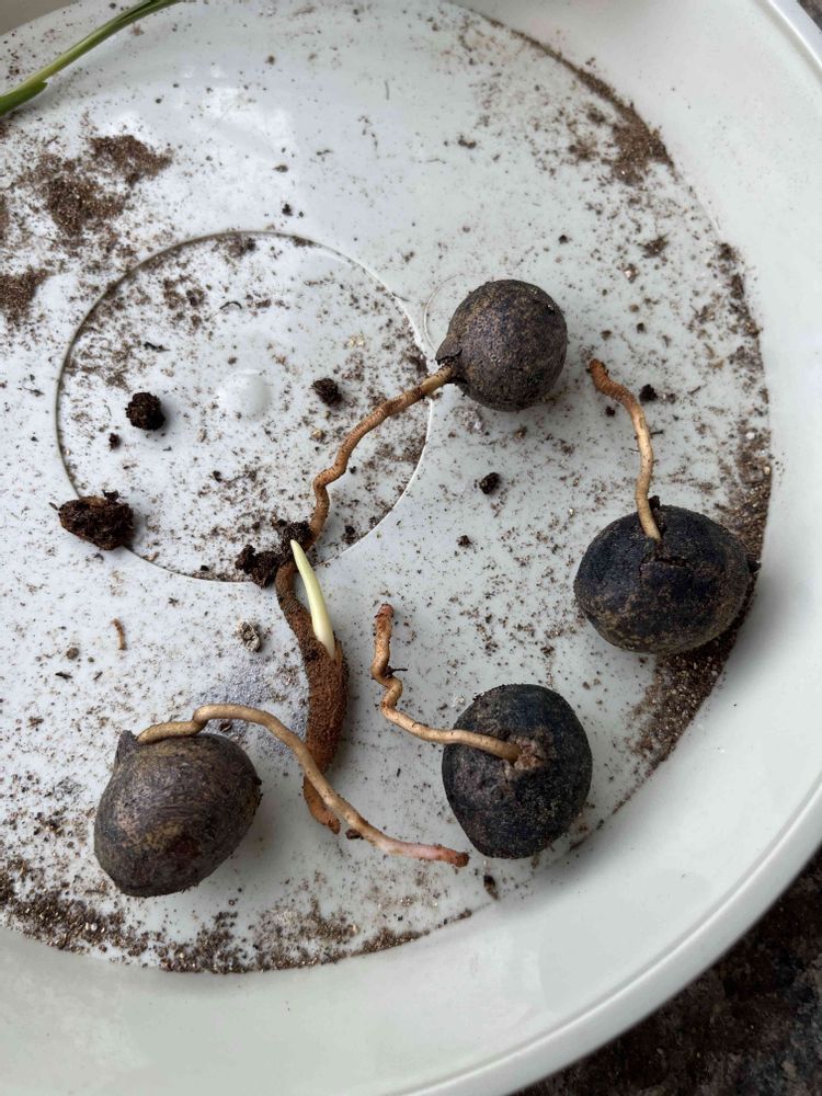 発芽率は100%と非常に良い状態です。採取時は硬かった実も今触ると柔らかくなってます。