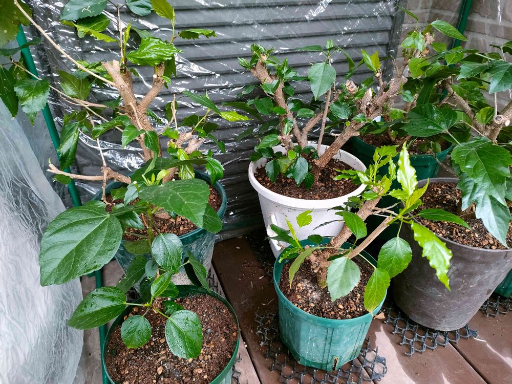 ハイビスカスを根っこを整理して、土を入れ替えました。