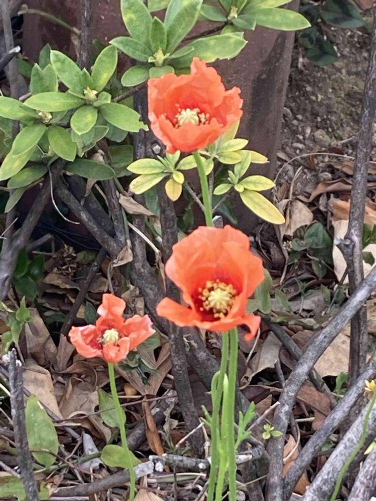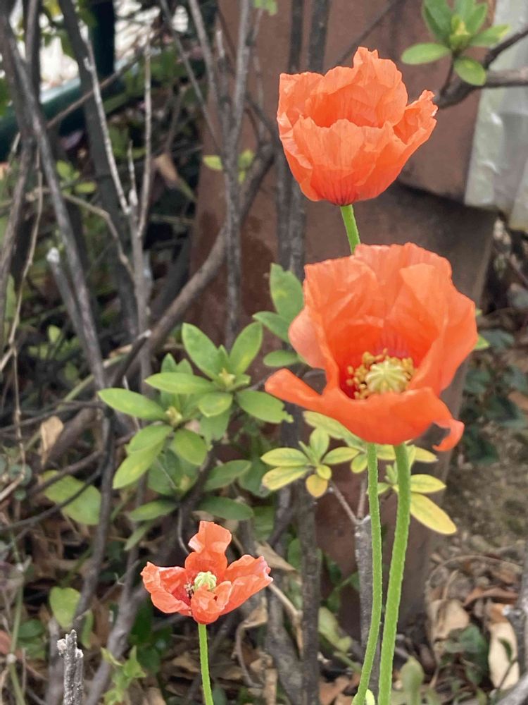 マック🍟🍔🥤の通勤路で咲いてた【ケシ】です🧡
