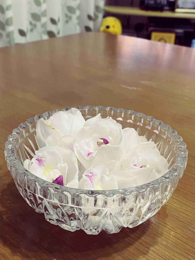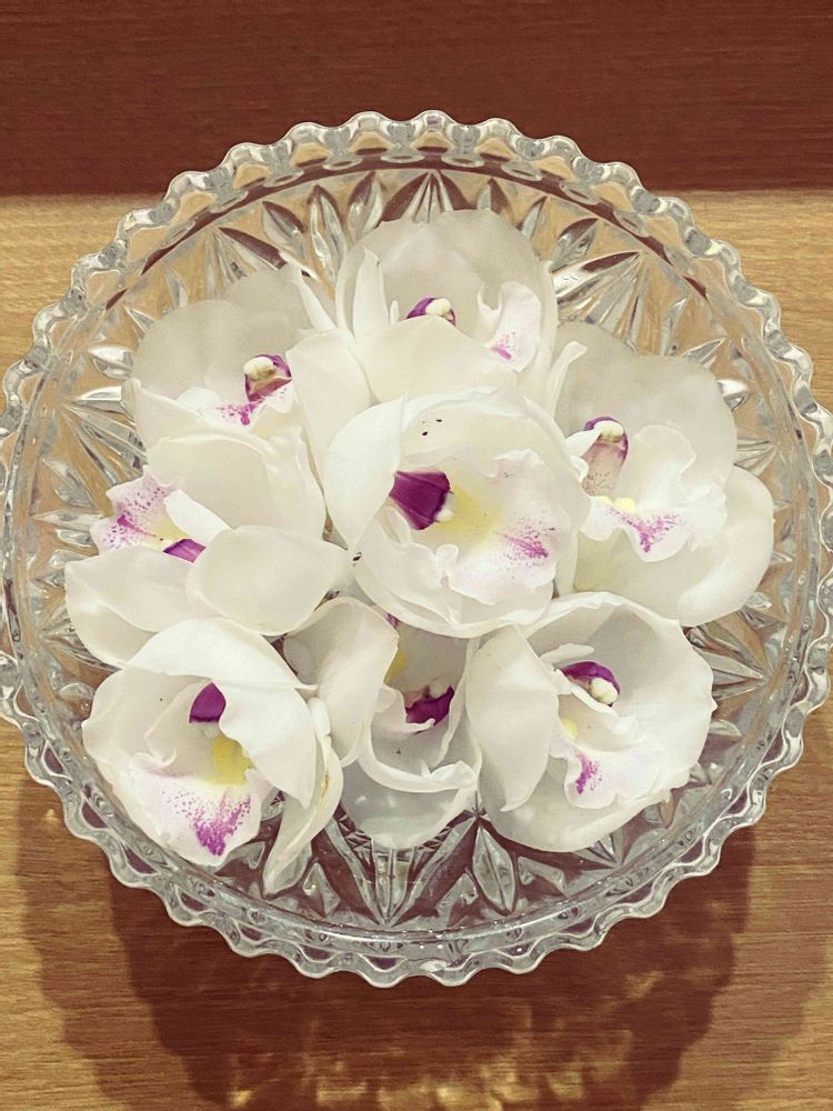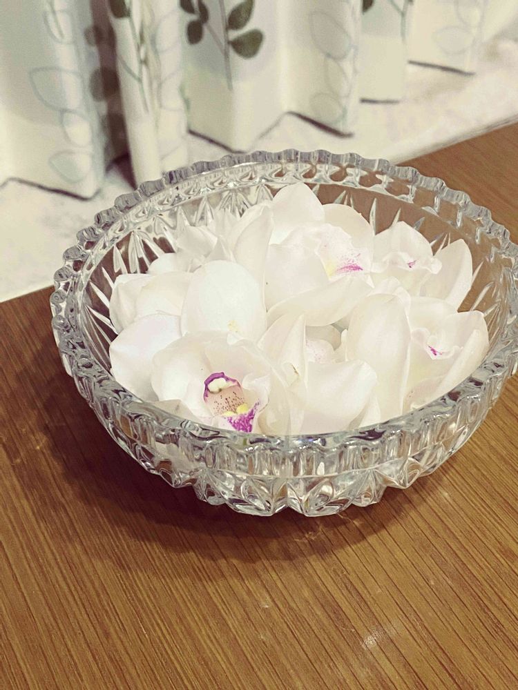 なんも考えないでガラスの器に花だけ入れたらキレイかなぁ〜?って単純な発想で😊
