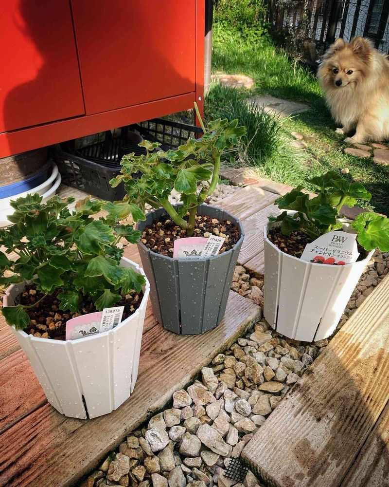 Last autumn, I sprayed lime nitrogen on my mother's geraniums and let them die. →I am now rescuing it by taking cuttings. The photos show the three pots I bought as an apology. I had ordered geraniums that I wanted to buy at the Hanatomo Festa, but they have been delivered!