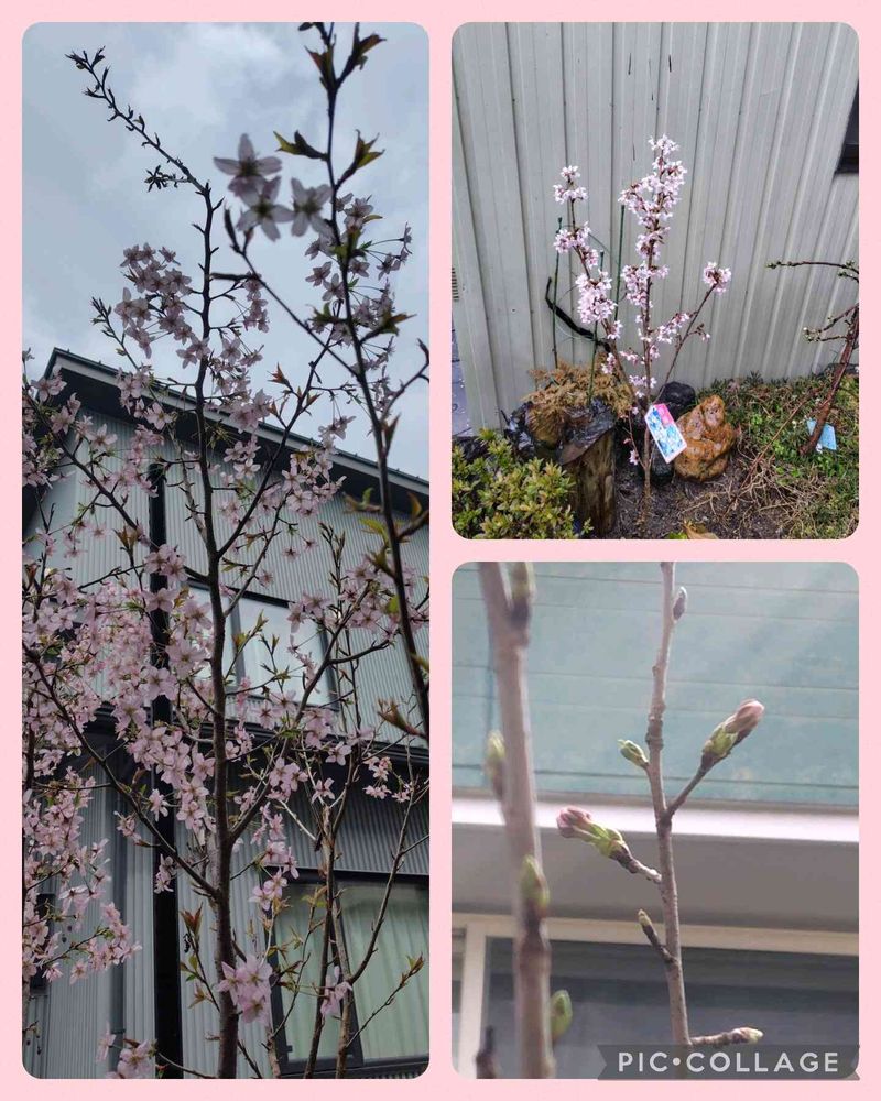 植える場所陽当りでこうも開花時期が違うとは···いつも一番に咲いていた陽光桜は蕾は大きくなっているけどまだ咲いていません! 咲いているのは啓翁桜だけ〜後はまだ準備中のようです。