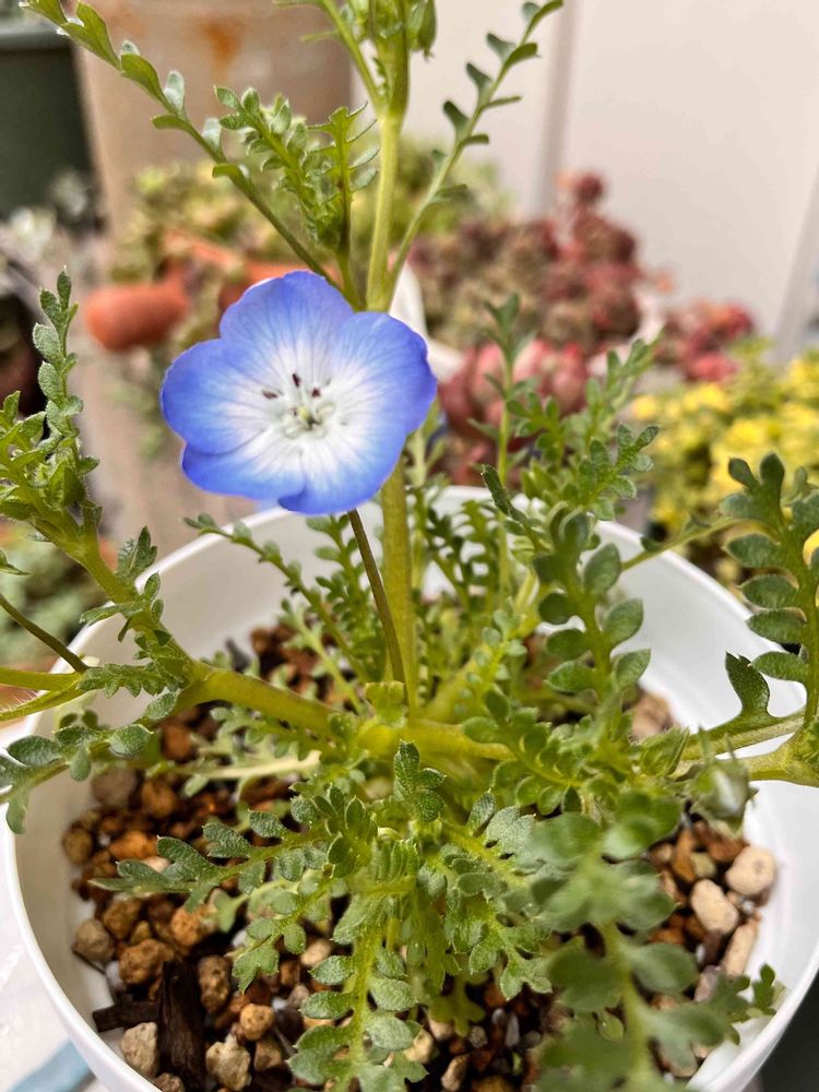 ご近所さんに頂いた一株だけのネモフィラ💙ようやく咲いてきました💕