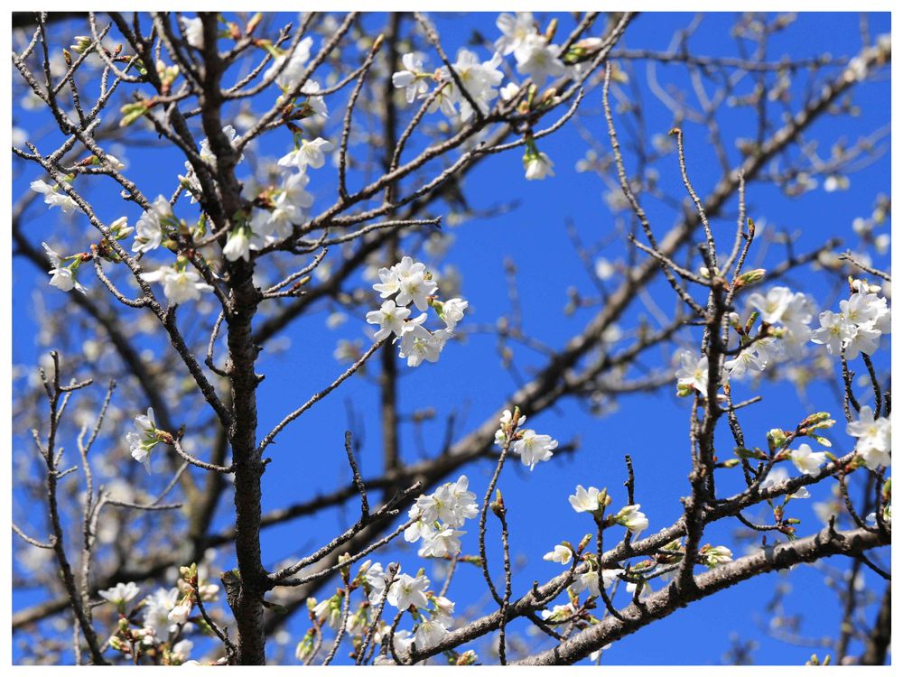 青空に「白い桜も良いなぁ」と感じました👍🎶