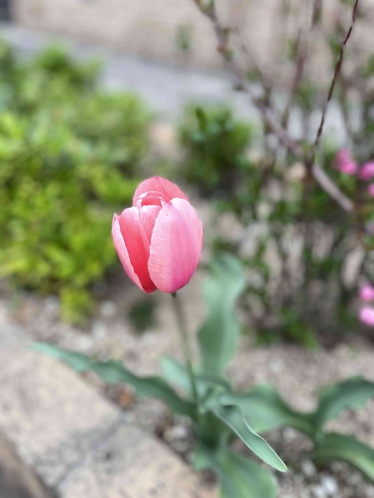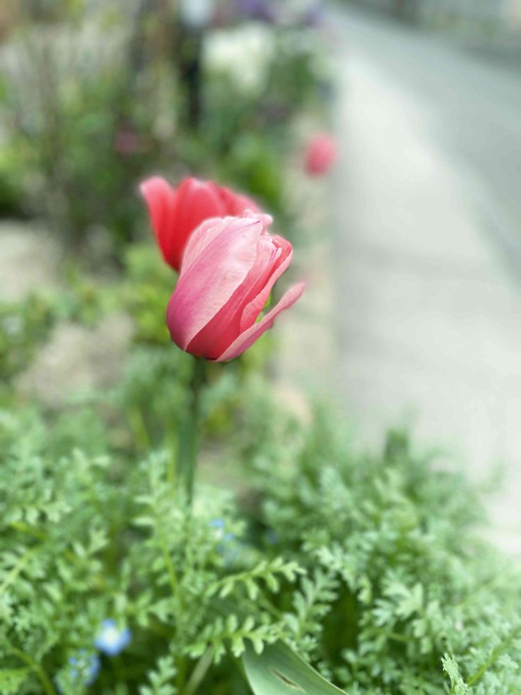 ウォーキング中、可愛いチューリップに出会えました〜🩷