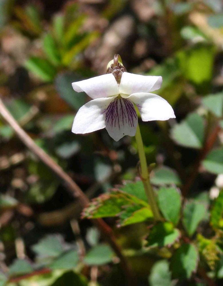 白いツボスミレ(ニョイスミレ)の花が咲き始めました、紫色の模様が綺麗です♡🌿
