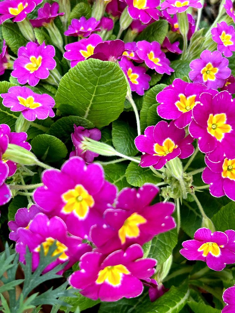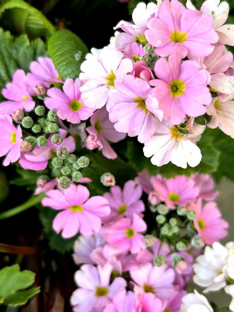 毎年咲いてくれる多年草のプリムラとまだ頑張ってくれるマラコイデス、ジムリアン達です🌿🌸🌿