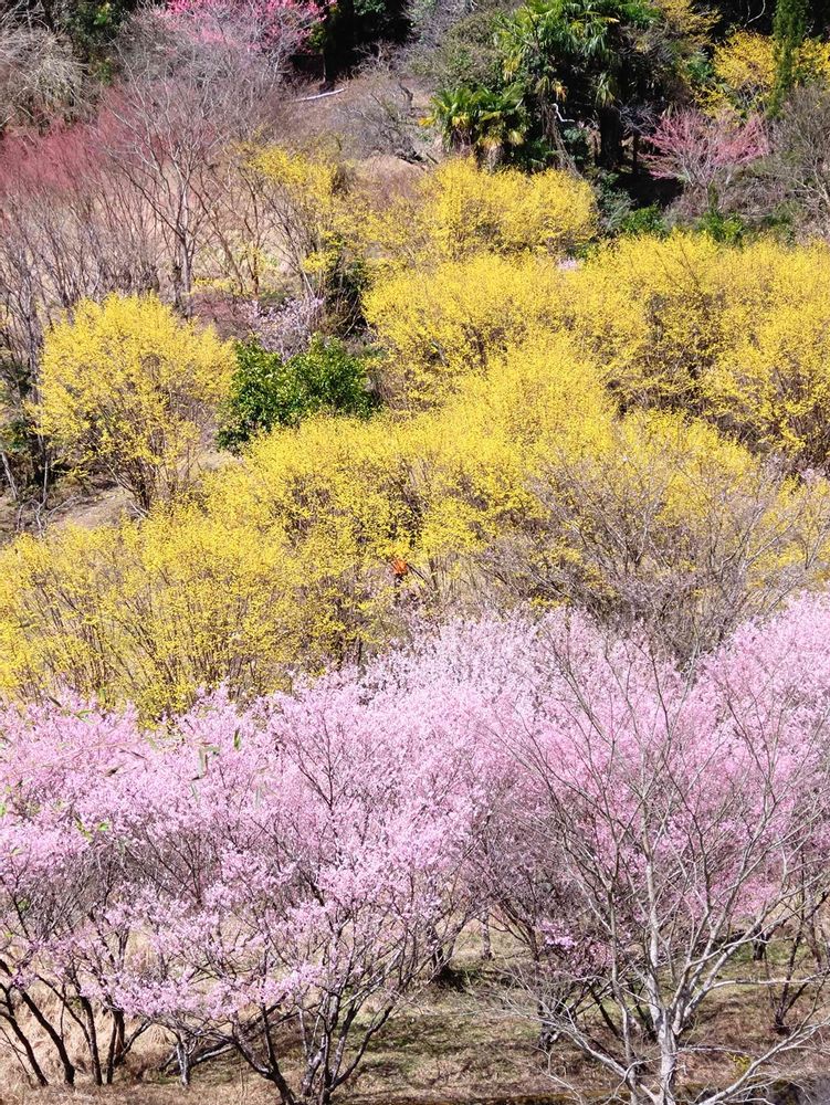 奈良五條市西よしの桃源郷の啓翁桜とサンシュユ、満開でした📷3月27日