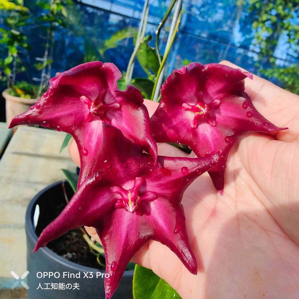 ふと見ると、まだ小さいと思っていた #ホヤ #マクギリブレイ の3連蕾が開花してた!?