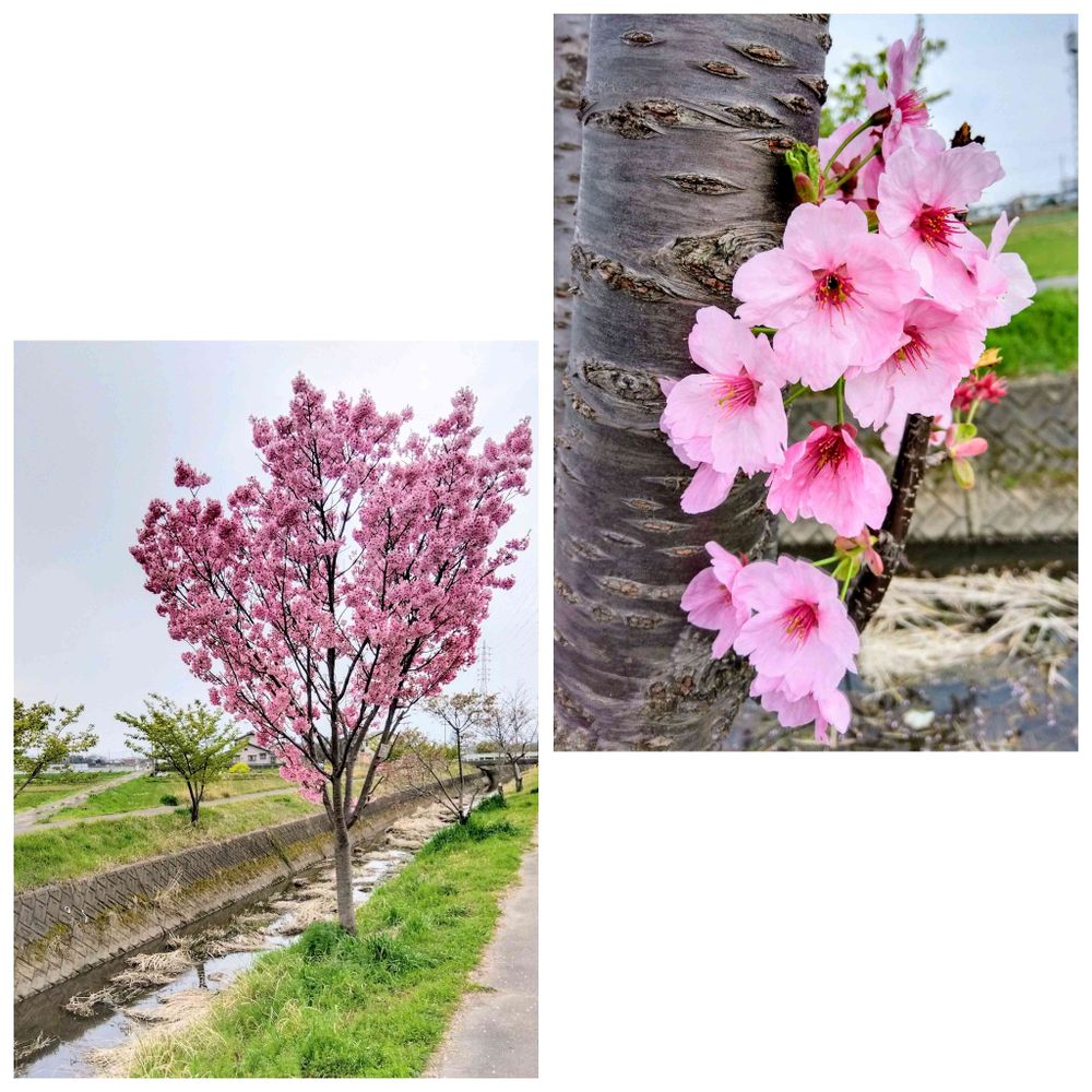 先月カワヅザクラが満開だった川沿いに1本綺麗に咲いた桜🌸