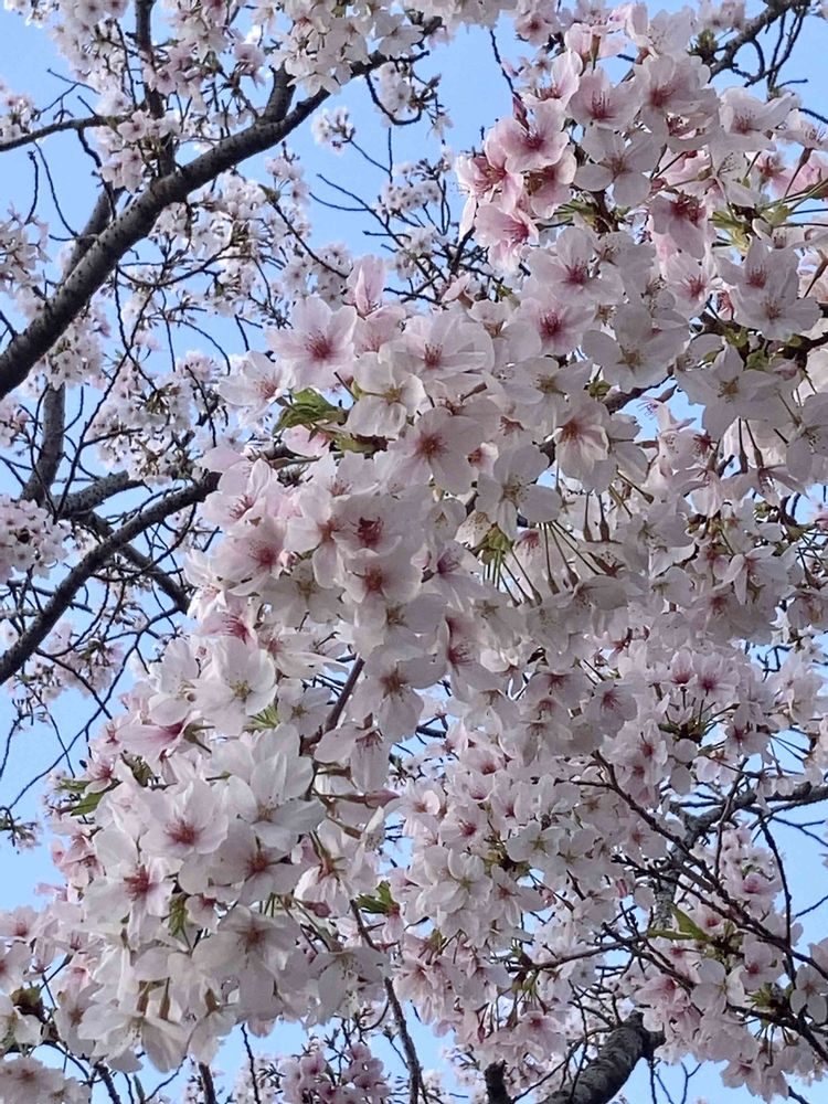 休日明けで出勤したらちょうど満開でした🌸😆🌸下から見上げると青空に桜の花が散らばって見えて♪このアングルが好きです🩵🌸☺️🌸🩵