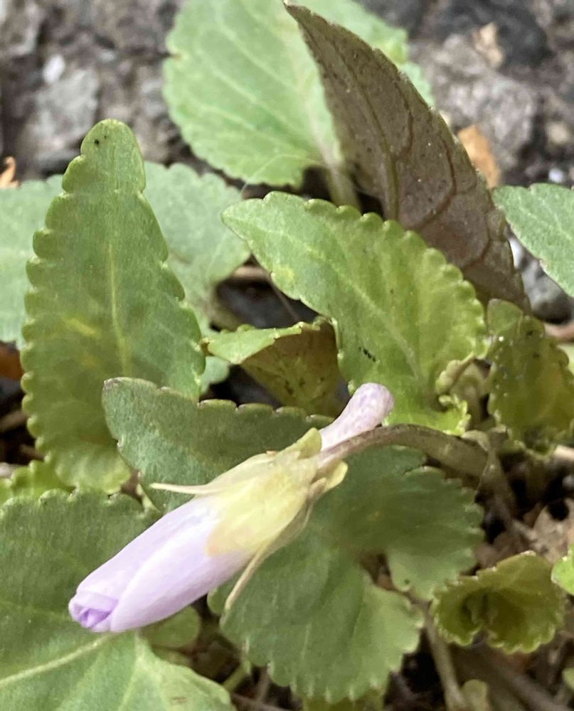 人家の玄関前のアスファルトの隙間に生えてくるスミレです🤍✨