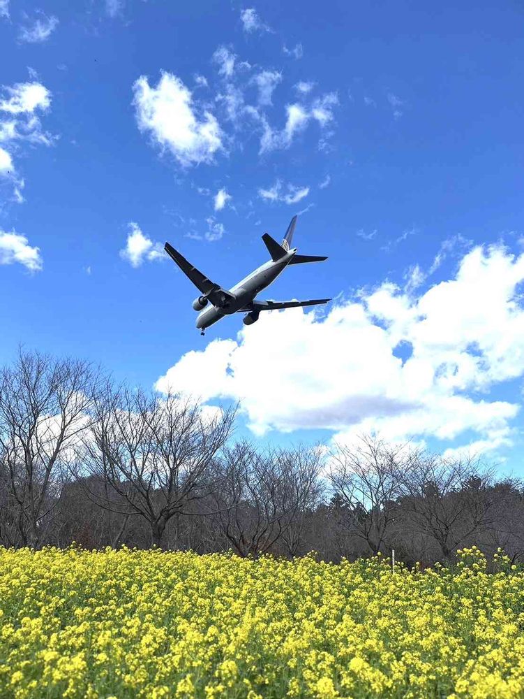 そこは着陸寸前の飛行機と菜の花のコラボが観られる絶景ポイントでした。