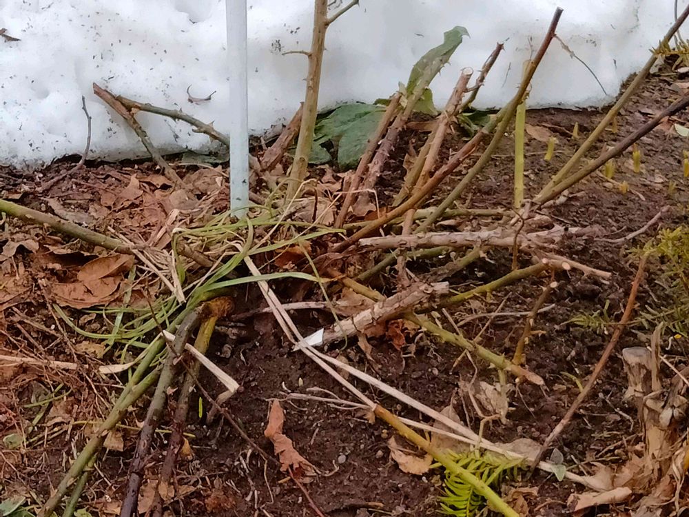 雪で折れたバラの茎