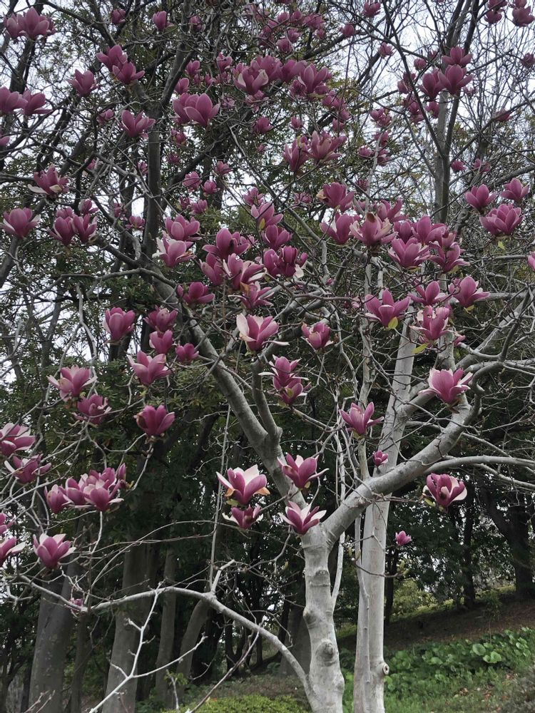 昨日、万博公園の日本庭園にて、紫色の「シモクレン(紫木蓮)」をパチリ!📸💜😊😄🤗👌
