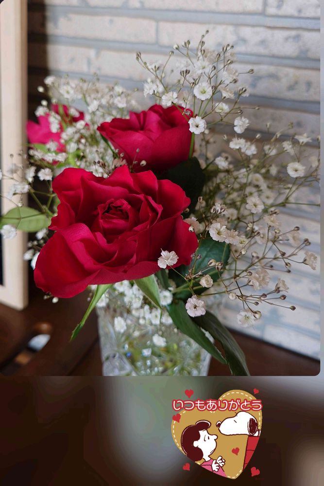 真っ赤な薔薇🌹と白い可憐なカスミソウ🤍