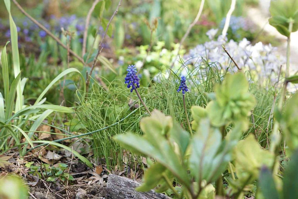 2枚目のムスカリ から左下のくるくる葉っぱが