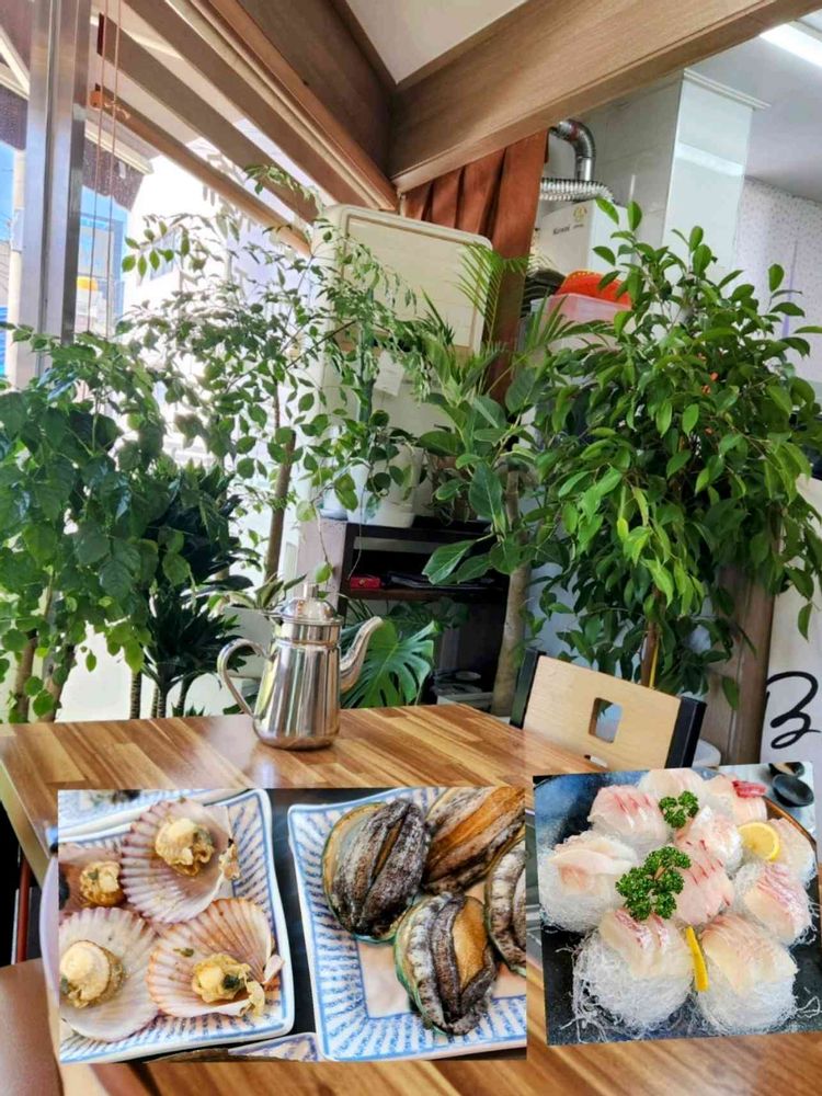 ③枚目は観葉植物たちがいっぱいの🪴素敵なお店で海鮮料理を堪能しました🎵😁