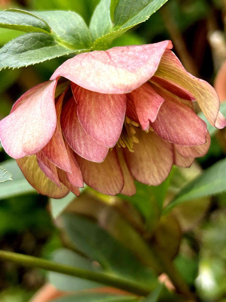 最後のクリスマスローズが咲き始め、まだ頑張っている八重さんです🌿💕🌿