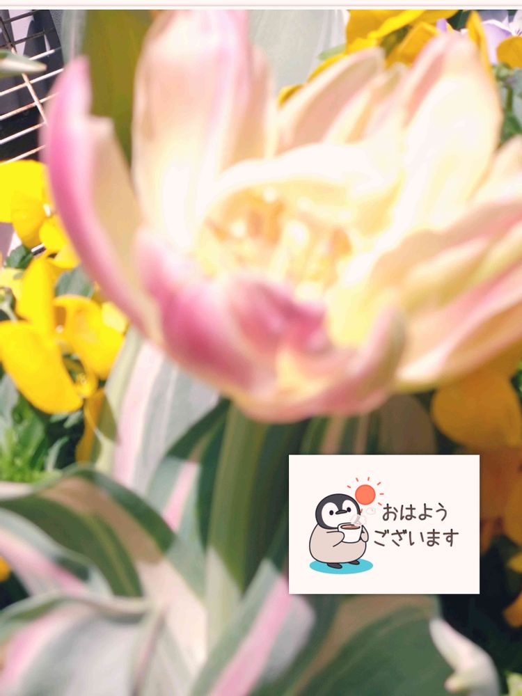 この前のチューリップ🌷ね😀葉っぱ🌿がピンクの🎵花の色が😅