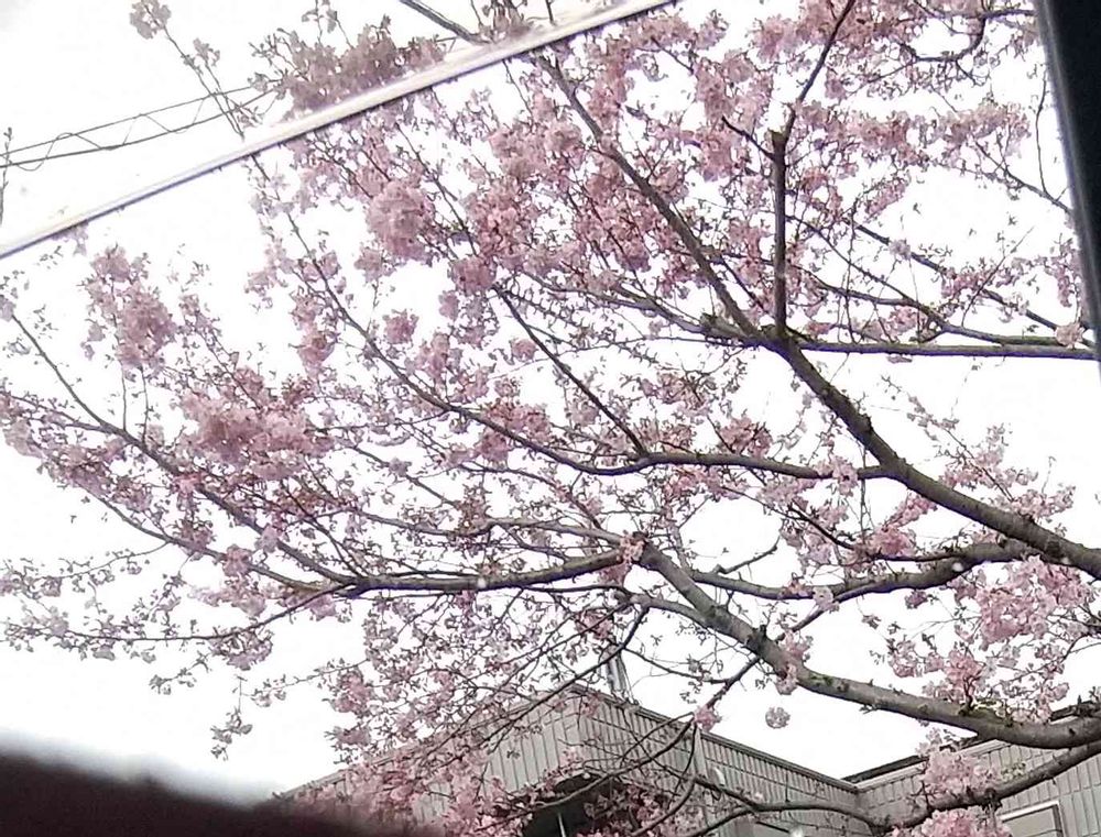 曇り空に満開の神代曙🌸