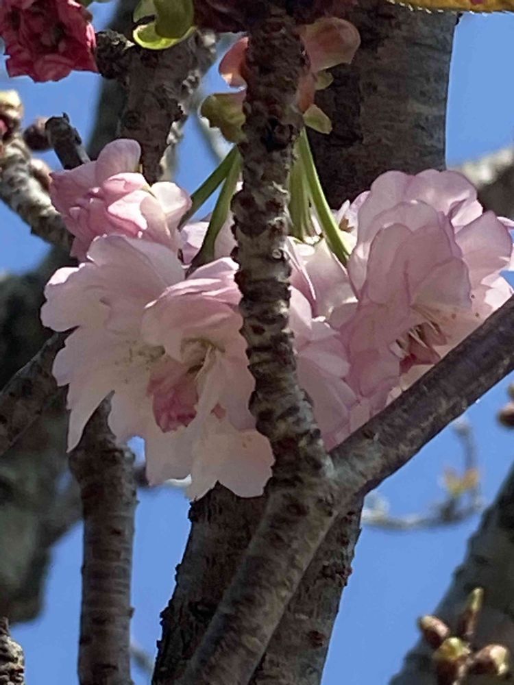 枝が邪魔して上手く撮れませんでしたが、蕾と比べると淡い色になるんですね〜