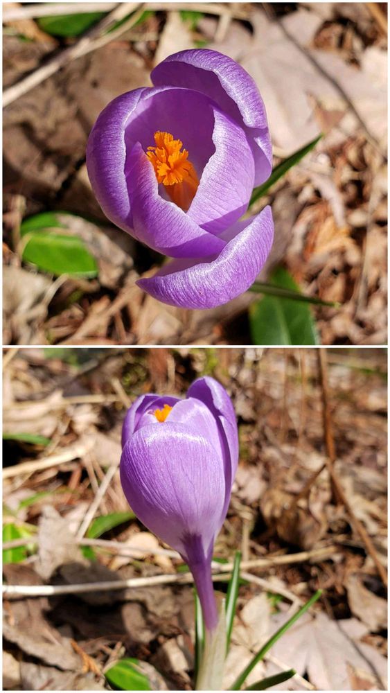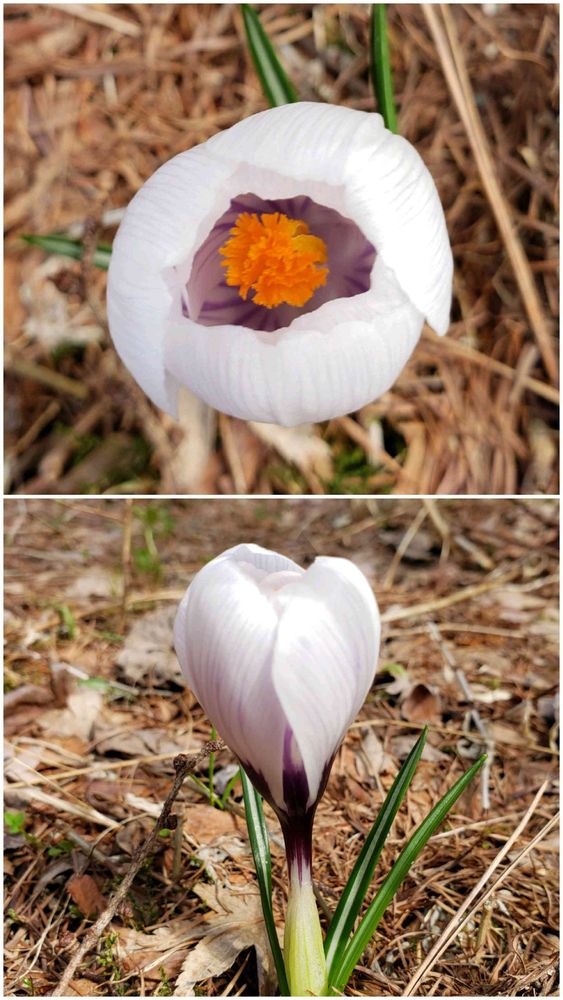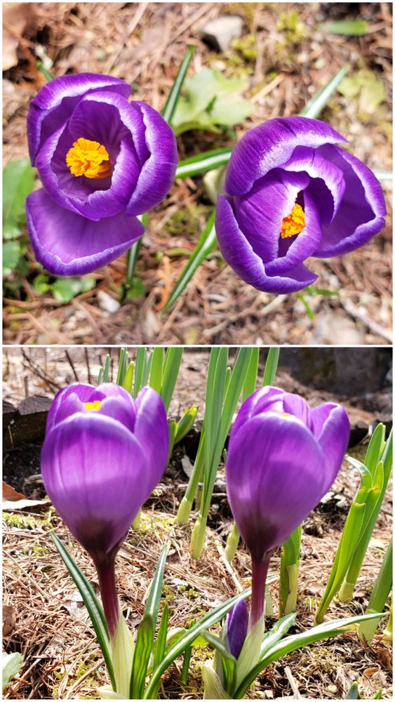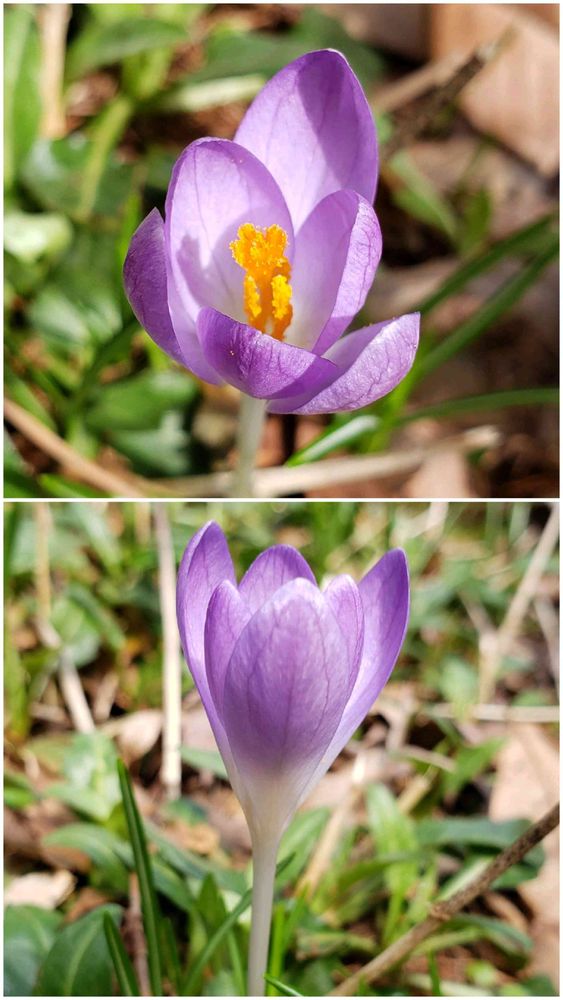 雪がすっかり解けて、クロッカスがぽつぽつと咲き始めたので、上から横から📸