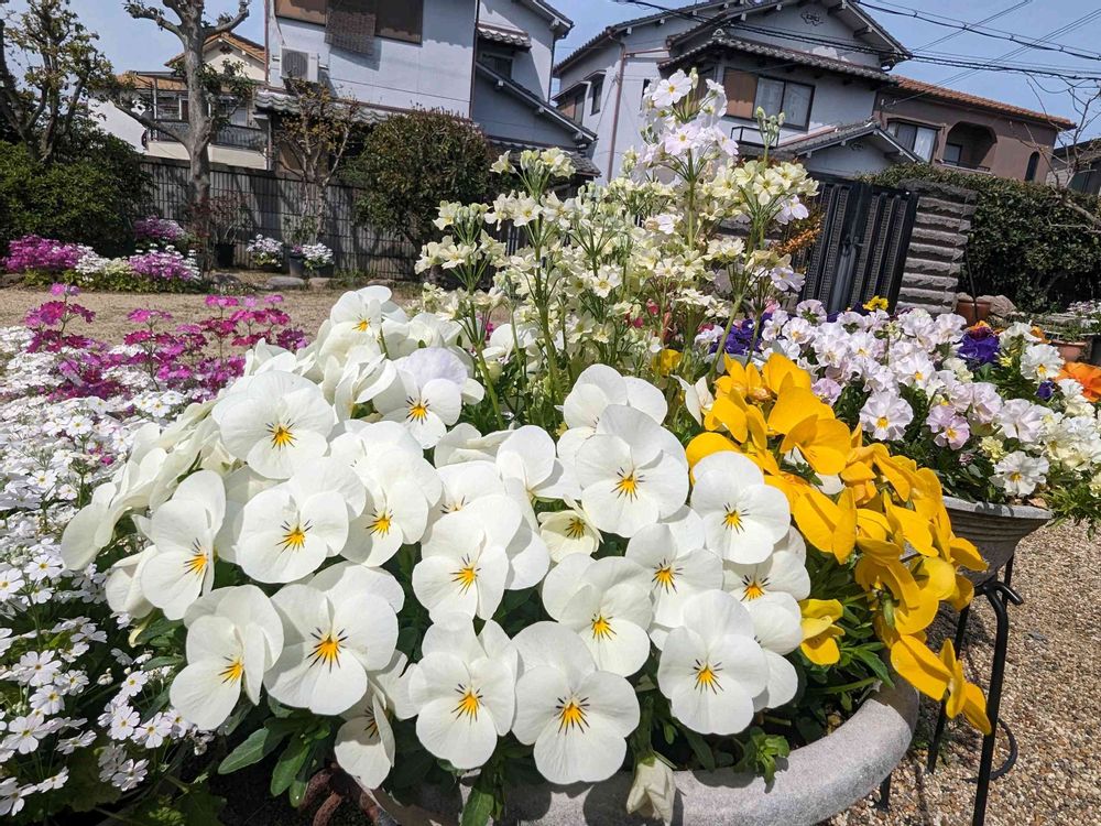鉢植えのビオラ全開です