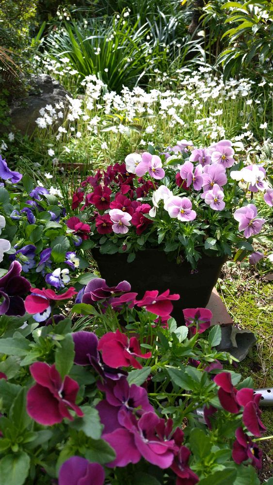 冬に植えたビオラも、モリモリになったところへ、バックに花ニラがビッチリ〜〜