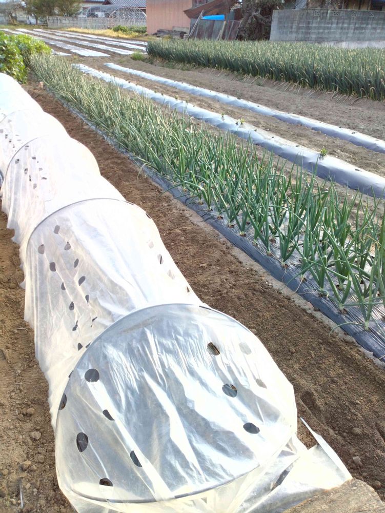 2️⃣今日、トウモロコシを播いて穴開きビニールをかけました。