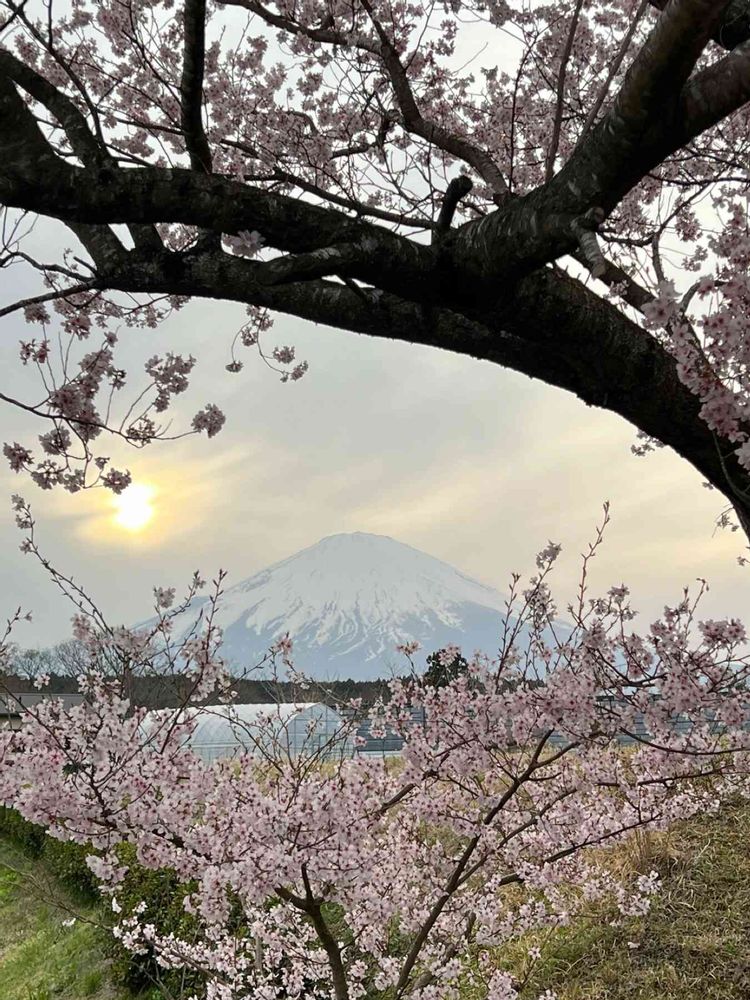 初めての夕日🌇と桜🌸と富士山🗻