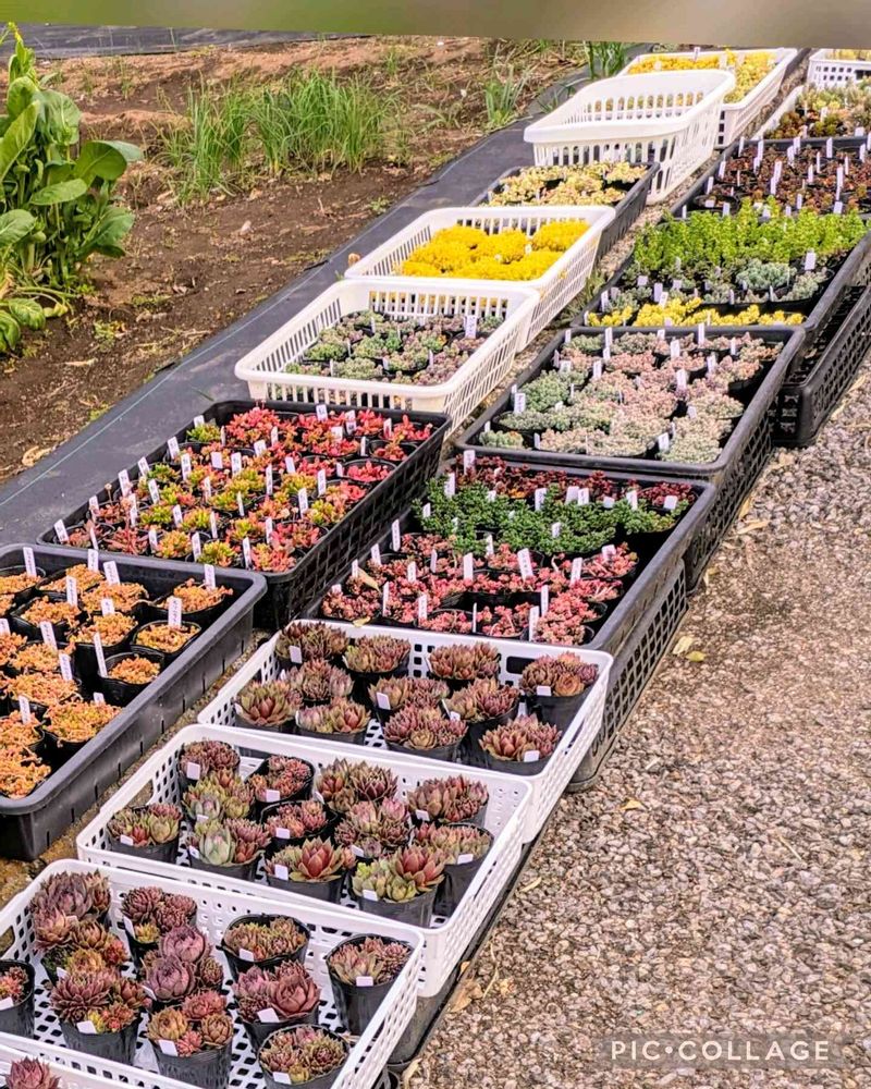 雨ざらしになっている、販売用のセダムとセンペルさん達です(笑)😁