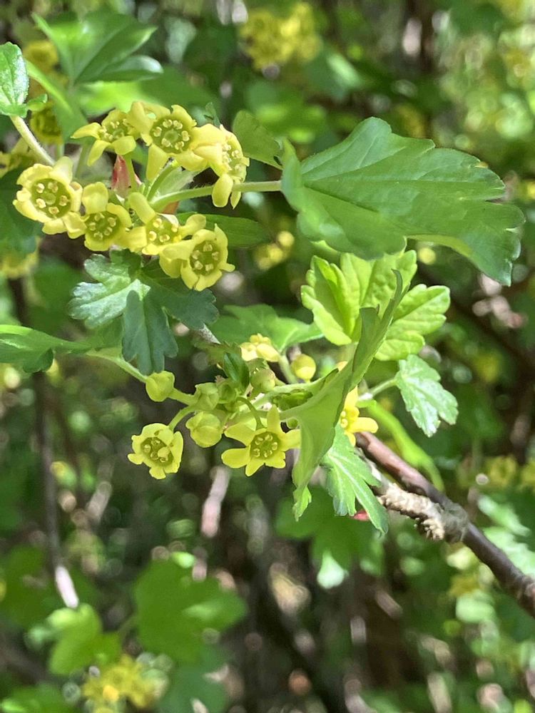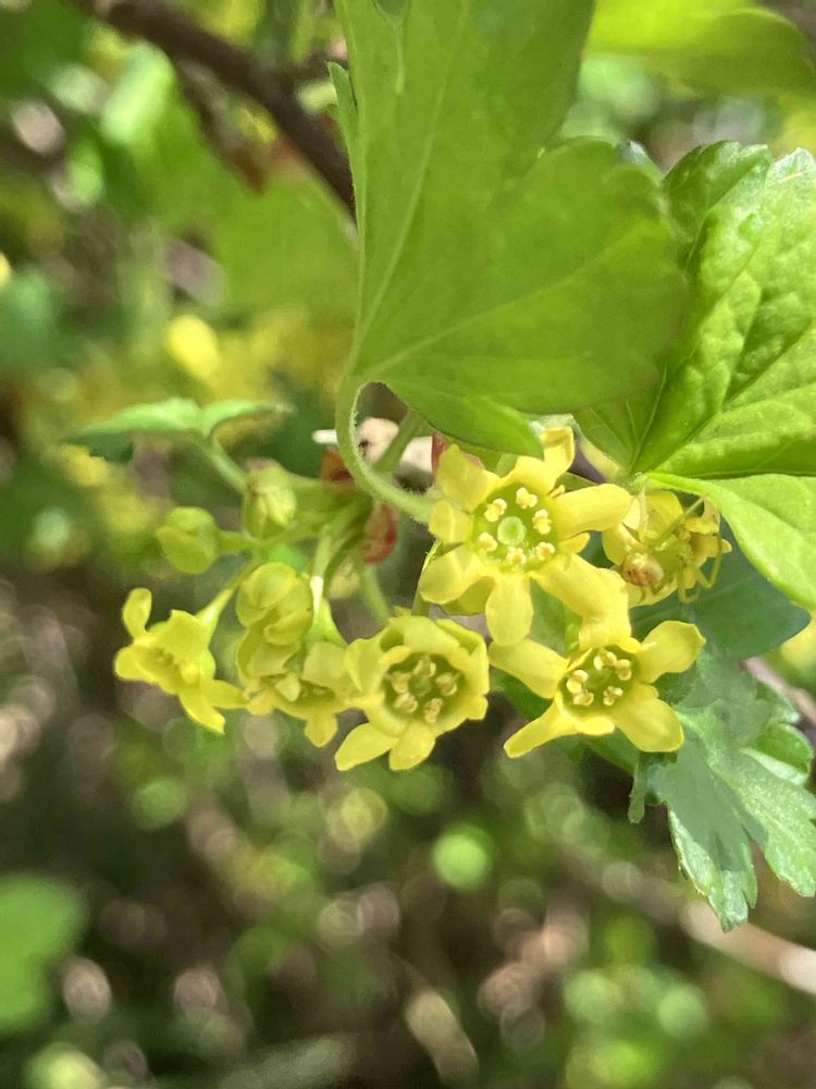 散歩道で見つけたけどなんでしょう 緑の葉に黄色い花が可愛い スグリ系だと思うけど赤い実かはたまた白い実か🧐 みとどけます