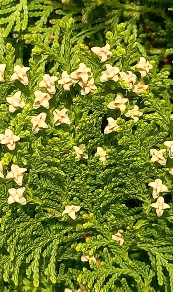 ④コノテガシワ(児手柏)のお花…雄花、雌花どちらでしょうか?