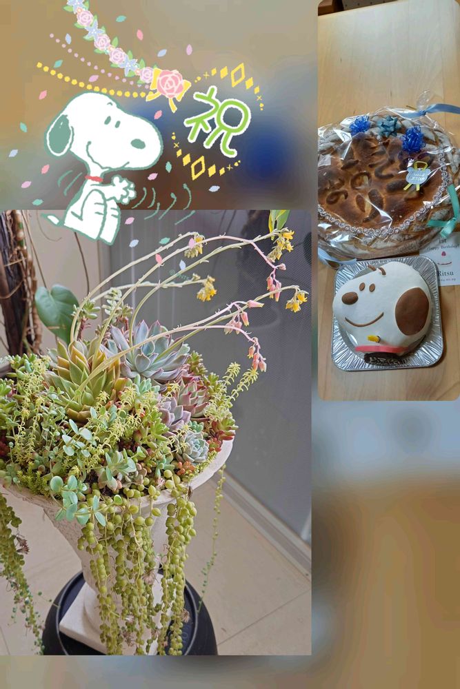 ゴージャスな多肉ちゃん寄せ植えと美味しそうなスヌーピーケーキ🎂