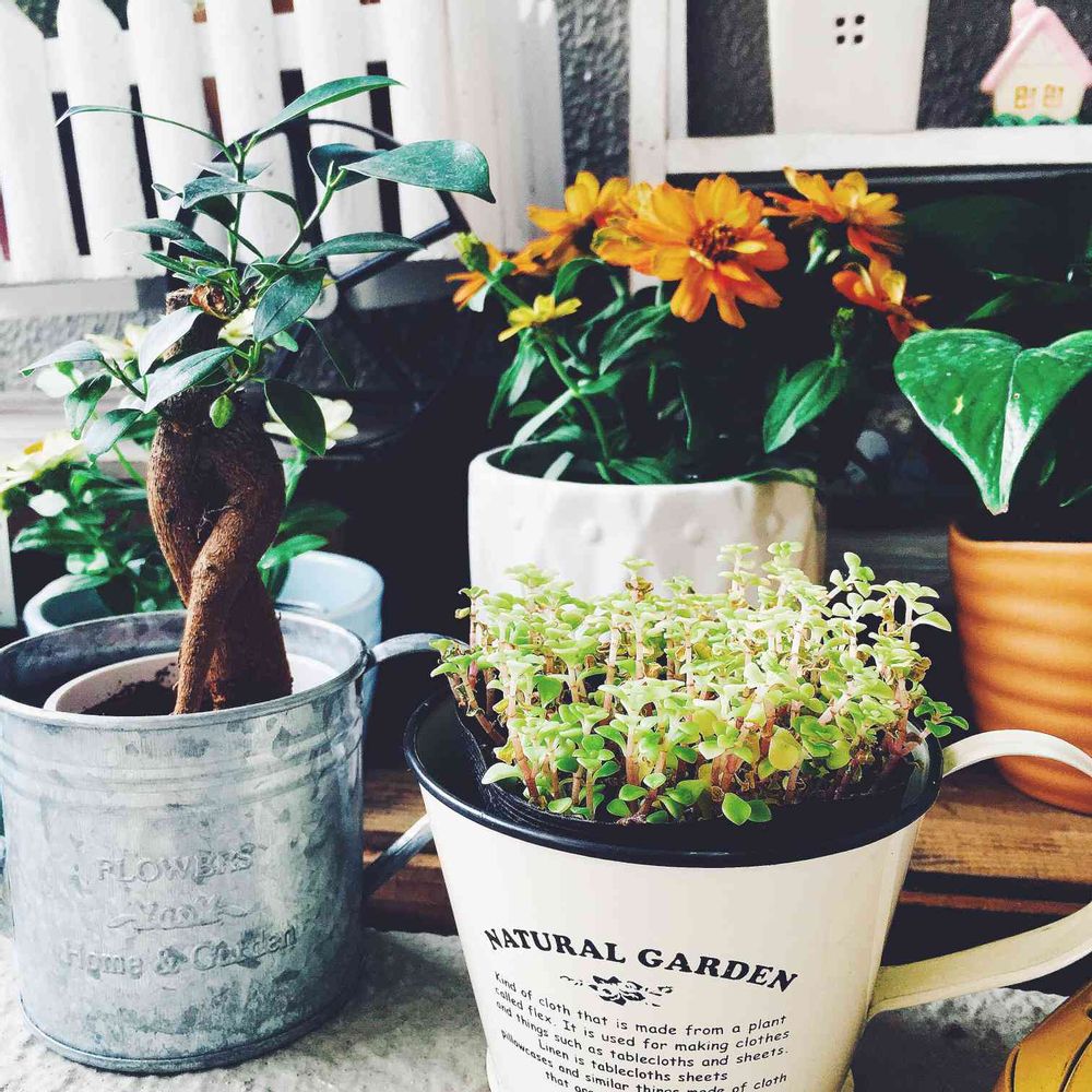 小スペースですが植物育て始めました!始めて1ヶ月の初心者です(>_<)いつかお庭が欲しい!