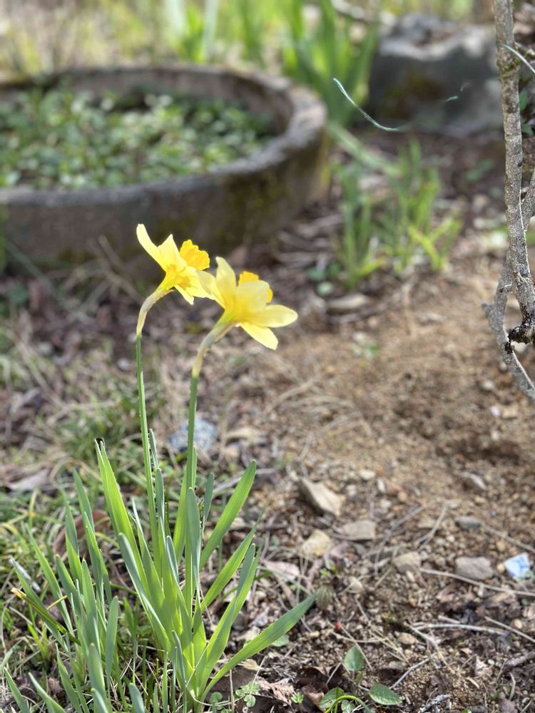 お日さまのほうに向かって仲良く並んだ水仙がまるで新一年生の友達同志のようで何枚も撮ってしまいました。新学期始まりますね〜🌸