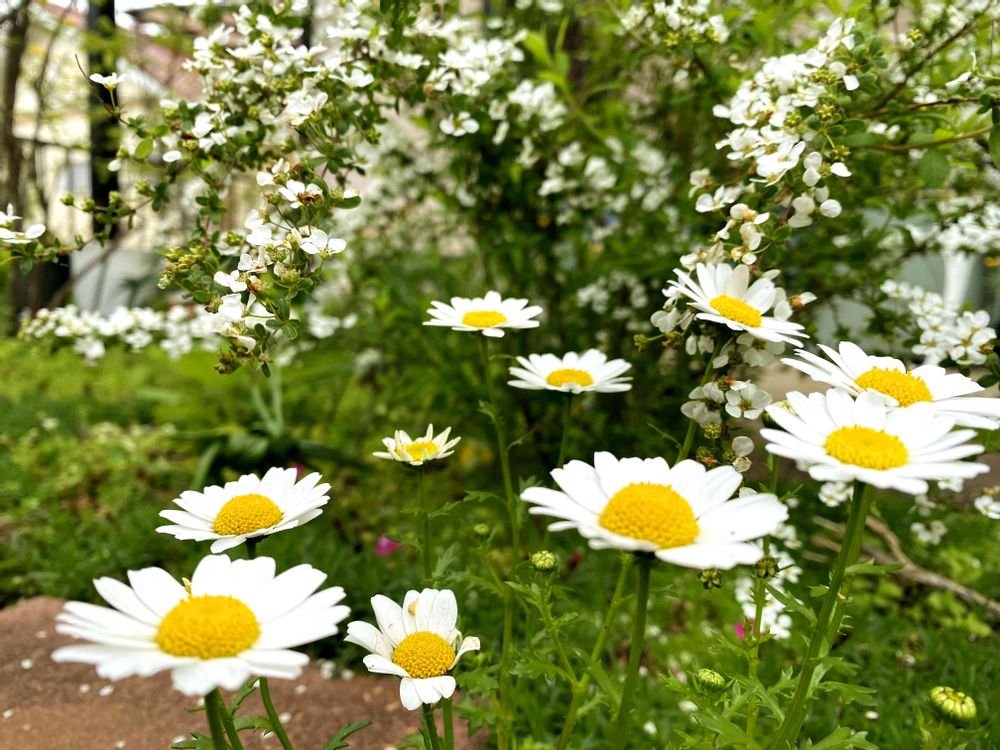雪柳の下で色白の競演✌︎('ω'✌︎ )